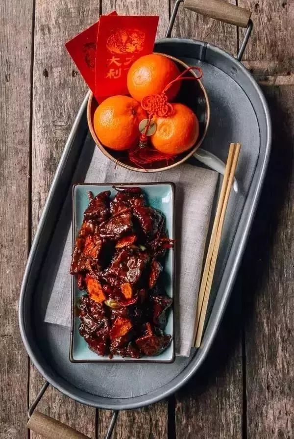 每一片牛肉上都沾满酱汁,橘味清甜,回味无穷!