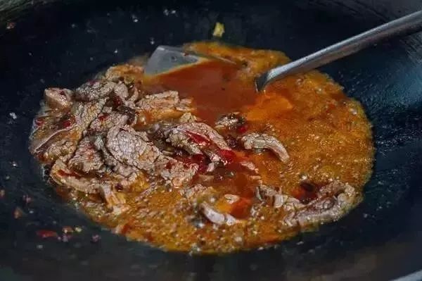 材料: 300克牛肉,切成5厘米厚片、¼茶匙小苏打、¼杯水、2茶匙玉米淀粉、花生油或菜籽油、200克豆芽、250克金针菇、姜3片、葱少许、1汤匙四川花椒、3汤匙辣豆瓣酱、1杯半鸡汤(或猪骨汤)、1匙半糖、1汤匙切碎的大蒜、½茶匙红辣椒片、1汤匙切碎的香菜、½茶匙四川胡椒。