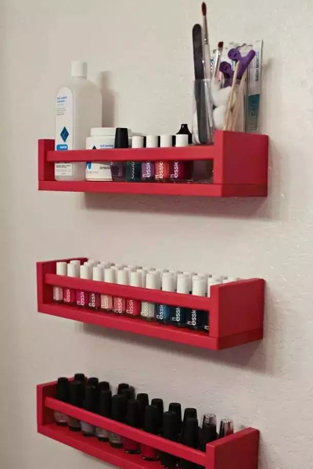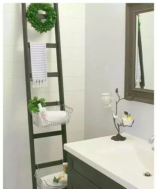 比如洗手台和墙间的空隙。一把简单的梯子,就可以让你用物品去填满。