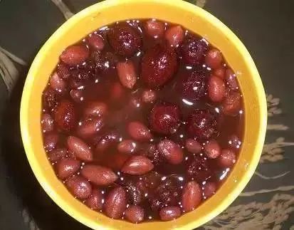 材料:红豆200g,干红枣10枚,红衣花生150g,红糖1汤匙(15g),水2000ml。