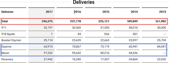 来源:保时捷公司财报,2013-2017车辆交付情况一览