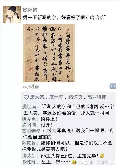 2、虞世南对欧阳询说“人的字和自己的长相相反”。