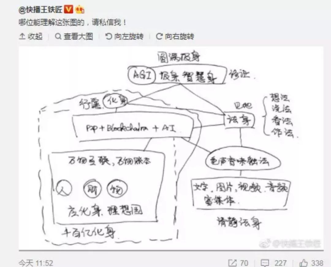 2月7日出狱那晚,王欣见了很多兄弟,共话了许多从前的江湖秘闻和往事,兄弟们发现虽然身在囹圄,王欣的思维却始终跟大家同步,甚至像他从前一样超前。众多被讨论的话题中除了老本行视频、去年的风口今年有点被盖过去风头的AI,不得不提的就是区块链了。