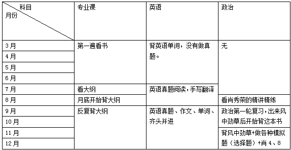 俗话说“凡事预则立,不预则废”,在准备考研的过程中,计划的制定尤其重要。在制定计划之前,要先制定一个目标,我老师曾经给我们说过,教育学考研(指全国统考)最起码要考360才有可能进复试,当时知道上海地区压分严重,也不敢高估自己,我就定了360分这个目标。你们可以结合自己的能力和目标院校的要求,先给自己定一个目标。