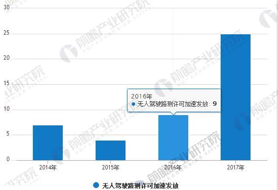 全球无人驾驶产业进程明显加速。2014/15/16 年分别为有 7/4/9 家公司获得加州无人驾驶路测许可,2017 年至今就已有多达 25 家公司获得许可,超过过去三年的总和,占到了总数的一半以上,呈现爆发式的增长。这表明无人驾驶的产业进程呈现明显加速状态,全球各大公司正加速推进无人驾驶汽车的研究,无人驾驶领域的竞争逐渐趋于白热化。
