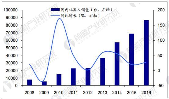 近几年国内工业机器人销量快速增长