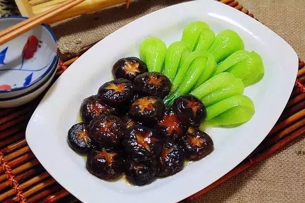 先把香菇和葱姜末同炒,再倒入油菜,快速翻炒,加蒜末。加少许盐、味精炒匀后,把泡香菇的水调入少许淀粉,勾芡即可出锅。