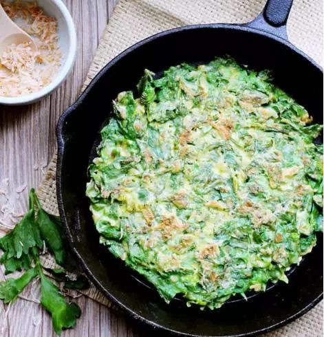 4. 锅内放橄榄油加热后倒面糊与锅摊成饼。