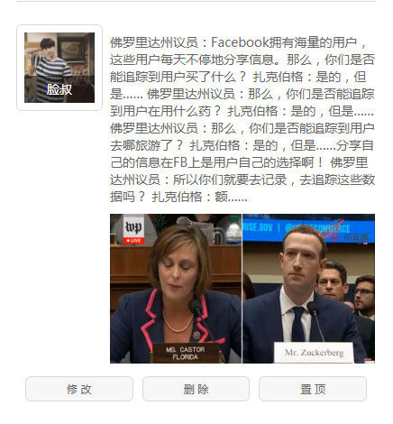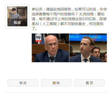 扎克伯格在第二场听证会休息间隙和现场人员交流 最后 这场规模难得一见的听证会,扎克伯格显然针对十面埋伏做了充足的准备。第一场听证会结束,Facebook在经历连续几周的下跌之后,投资者股价上涨4.5%。这不得不说是一个黑色幽默,或者也可以说,扎克伯格这次“八面玲珑”的公关,又成功了。 只可惜,这样的场景,在李彦宏和张一鸣们的身上,看不到。 |