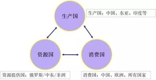 当然,某些国家可以同时具备资源提供国、生产和商品输出国、消费国这三个角色,比如中国就是这样的国家,中国即可以提供其他国家少有的资源,也具备世界最大的商品生产能力,同时还拥有世界最多的消费人群。