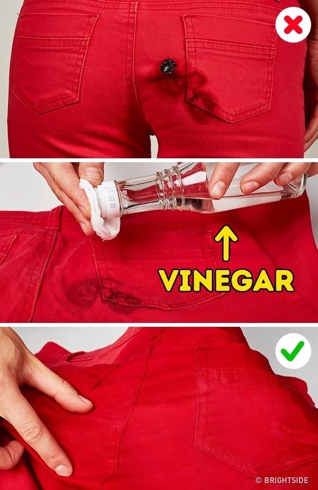 葡萄酒渍,特别是红色的葡萄酒一不小心洒在你的身上怎么办?用化妆棉蘸醋和热水的混合物,擦拭污渍就能让污渍分分钟变干净。