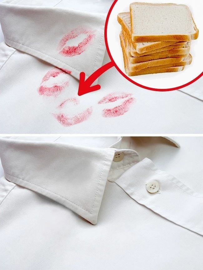 面包可以用来去渍?没错!想要除去口红或者唇膏印,只要用平常我们爱吃的白面包就可以轻松擦去!