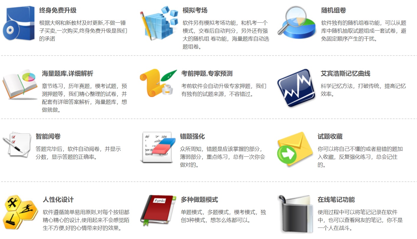 软件简介:本宝典是一个专业的题库练习软件,功能强大,操作简单易懂,可以轻松提高60%的学习效率和记忆力,专业服务于各种职业资格考试,主要有建筑工程类、财务会计类、经济贸易类、医药 卫生类、外语类、职业资格类、公务考试类、学历类等八大类近千种考试题库