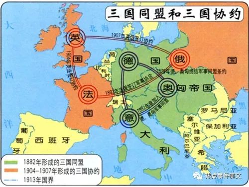 19世纪七八十年代德国、意大利和奥匈帝国结成同盟国和俄国、英国、法国组成的协约国开启了第一次世界大战,随后奥斯曼土耳其帝国加入同盟国,最终同盟国被协约国打败,第一次世界大战结束。