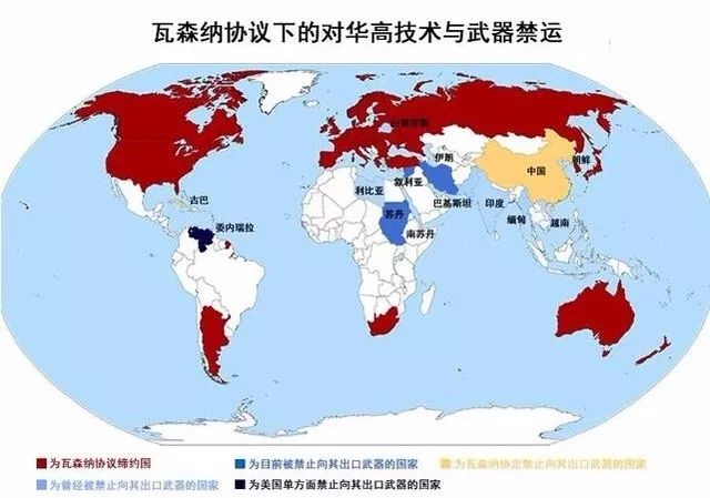 1996年,美国协同其他32个西方国家共同签署“瓦森纳协议”,决定自1996年11月1日起执行新的出口管制清单和信息交换机制,中国仍然位列被管制国家之列。
