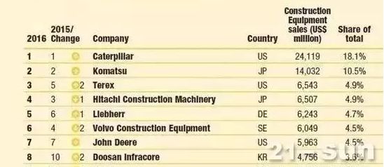 日本小松,日立分列第二,第四。