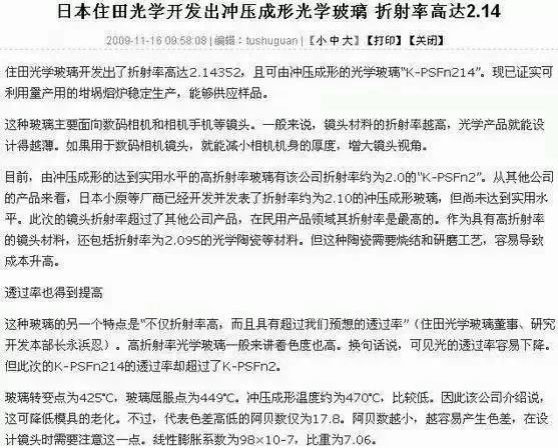 世界先进光学玻璃制造商有日本保谷光学Hoya,日本小原光学Ohara,日本住田光学Sumita,德国肖特光学Schott。其中日本住田光学Sumita保有精密模压而成的光学玻璃的,世界最高折射率,世界最低成形熔点,世界最多品种数量记录。日本住田光学Sumita的光学玻璃无论在制造工艺,还是在产品种类上全面领先其他同行。