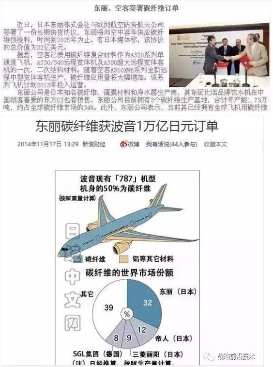 波音,空客是东丽的常客。空客在2010-2025期间要从东丽进口价值21-32亿的炭纤维材料,波音也一样。