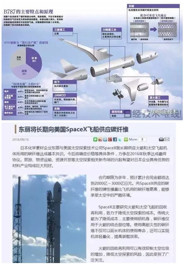 炭纤维在新世纪和未来发挥着越来越重要的作用,高端军事,工业,生活,汽车,飞机等等都离不开这玩意儿。炭纤维技术基本被日本东丽,东邦,三菱丽阳垄断。目前中国T800还不能完美量产,东丽目前已经在玩T1100G了。