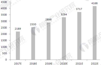 2017-2022年我国智能建筑行业市场规模及同比增速预测(单位:亿元)
