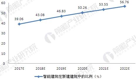 2017-2022年我国智能建筑在新建建筑中的比例预测(单位:%)