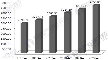 2017-2022年中国医疗器械行业销售收入预测(单位:亿元)