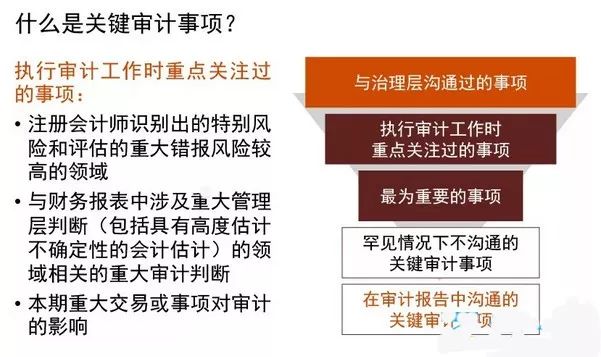 关键审计事项首先一定是注册会计师和治理层沟通过的事项;第二步,注册会计师从这些与治理层沟通过的事项中选出审计中重点关注过的事项;第三步,注册会计师确定其中哪些事项是最为重要的。此外,准则允许注册会计师在极个别情况下不沟通确定的关键审计事项。投资者阅读的审计报告中的关键审计事项就是通过这个过程识别和筛选的结果。