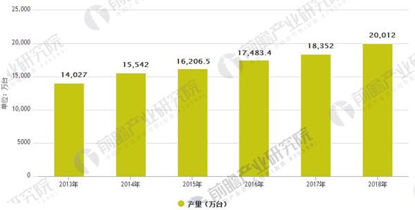 据前瞻产业研究院发布的《中国智能电视行业商业模式深度研究与构建策略分析报告》数据显示,2017年彩色电视机产量达到18352.0万台,随着人们生活水平的提升,消费者对彩电产品的科技感、服务型和艺术性逐渐加强,人工智能电视市场份额提升显著,同比增幅80%。2018年人工智能或将成为彩电产品标配,预计2018年彩色电视机产量有望突破2亿台。中国彩色电视机产量及预测