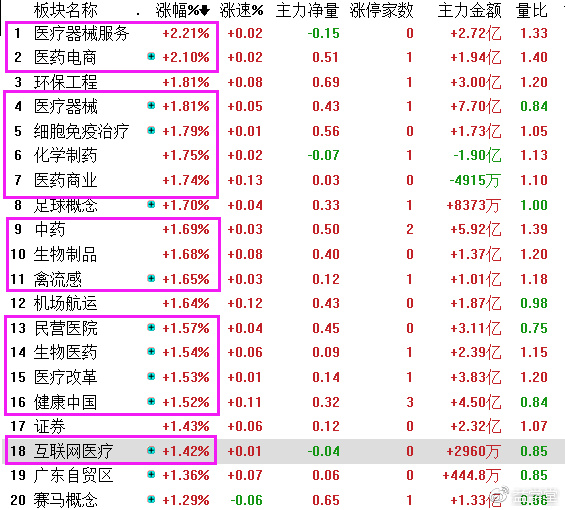 不管怎样,我们自己的节奏还是不能乱的,盯准的暗线泛医疗概念股不能丢。上周五一哥写了一篇《良药不苦口!》的文章且在后期分享了一只【九强生物 300406】后,泛医疗概念股多次开挂,今天再次全线走强,涨幅榜前20名几乎被刷屏。