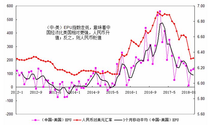 相对经济基本面的差异,我们可以采用一个指数差来衡量,即采用不同经济体之间的不确定性指数(EPU)差异,EPU指数虽然表征各经济体的经济政策,但是大致可以衡量各个经济体的基本面变化。