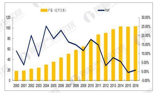2016年我国陶瓷市场情况有所好转,产销率超过2013年水平,达到82.51%,陶瓷砖产量完成也同比小幅增长1.81%,达到110.76亿平米。