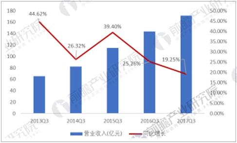 据前瞻产业研究院发布的《互联网金融行业市场前瞻与投资战略规划分析报告》数据显示,以计算机板块中14家互联网金融相关股票为样本,前三季度共实现营业收入171.12亿元,同比增长19.25%,增速基本与行业平均持平。互联网金融板块前三季度共实现净利润24.56亿元,同比增长104.05%,行业发展迅速,业绩持续暴发,属于景气度较高的行业。
