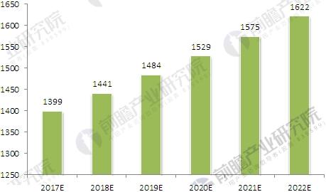 2017-2022年白酒行业产量增长预测(单位:万千升)
