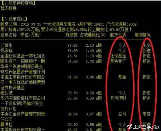 以002769普路通为例,按电脑F10,点到股东研究,会发现公布的一季度情况是,社保,基金,信托都在新进。虽然这个公布会滞后,但也可以做为一个重要的参考指标,有时你甚至会发现有意外的惊喜。当然也可以留意龙虎榜数据。