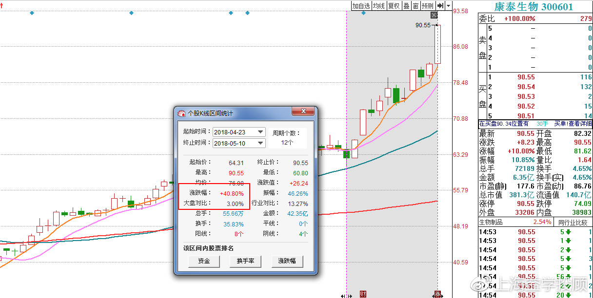 以今日盘中涨停龙头股【康泰生物 300601】为例,自4月23日至今日收盘,12个交易日涨幅高达40%,对比同期大盘涨幅3%,跑赢基准指数37个百分点。如此良好的走势,没有不继续关注的道理,而且在前天的文章内也提示过了,医药股依然是继续作为配置的标的,这一点在短时间之内不会改变,除非市场出现较大的系统性风险。
