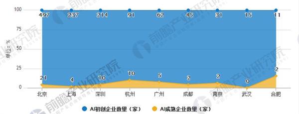 全国各地AI初创、成熟企业数量(家)