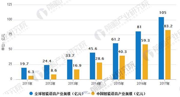 全球和中国智能语音产业规模对比