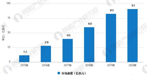 目前,我国人工智能领域发展迅速。据前瞻产业研究院大数据显示,2015年中国的人工智能市场规模达12亿美元,预测将在2020年达到91亿美元的规模,这意味着在未来几年内,每年的增长速度都达到50%。