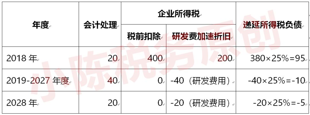 (1)税务上2018年按优惠政策计提折旧400万元,折旧产生的财税差异应调减应纳税所得额=400-20=380万元;
