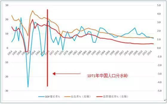 从上图可以清晰看出,开始大力推行计划生育的1971年是中国人口变化的一个明确分水岭。