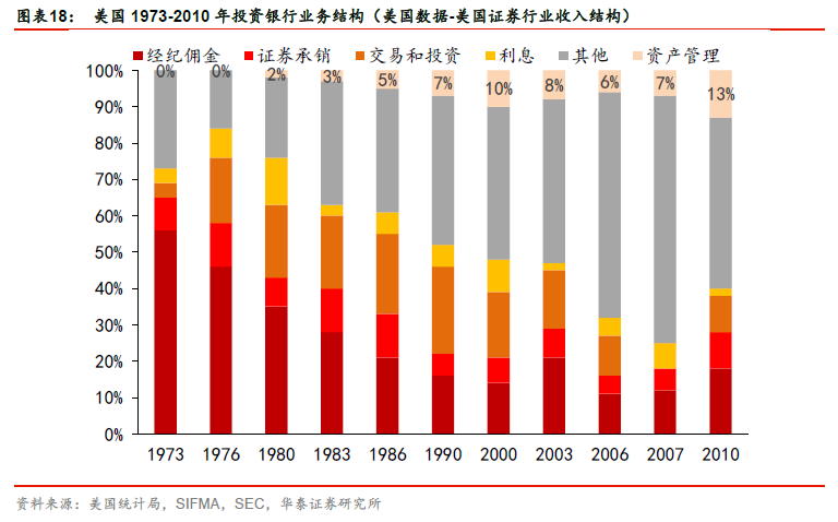 2016 年以来重磅监管政策频出,旨在规范行业乱象。2016 年8 月资管业务“八条底线”修订,2017 年年初银行监管组合拳明确金融机构不得为其他金融机构的资产管理产品提供规避投资范围、杠杆约束等监管要求的通道服务。监管层一系列监管措施方向明确,即通过资管产品去通道、去嵌套引导资金服务实体经济。资产管理业务有利于市场多样化的资源配置模式,通过发行资管产品对接资金和资产,能更加灵活地满足资金和资产双方的收益和风险管理需求,整体上扩大资源配置渠道,提供市场资源配置的效率。我们认为2013 年以来理财业务虽迅速扩张,但主要为同业链条嵌套导致资金在金融体系空转,拉长了企业融资链条,使资金难以有效流入实体经济。2018 年4 月27 日,一行两会一局联合发布《关于规范金融机构资产管理业务的指导意见》,百万亿元资管业务的监管靴子落地。资管新规延续了监管层此前消除多层嵌套、去通道、降杠杆的监管思路,并明确业务准备金计提要求。我们认为随着券商资管“去通道”化趋势的持续,将推动券商提升主动管理能力,回归资管业务本源,提升产品竞争力。
