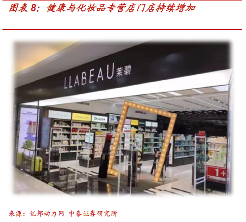 化妆品专营店快速增长。化妆品专营店作为零售终端,凭借广泛的产品选择、专业BA导购、以及门店增值服务等优势,迎合消费升级的需求,渠道占比逐步上升,2016年达到10%。为了应对网络零售份额的增加对线下专营店造成的冲击,化妆品零售企业着手优化一线城市门店布局,逐级下沉低线市场,并开设网上商城以推动渠道融合,促进销售良性增长。
