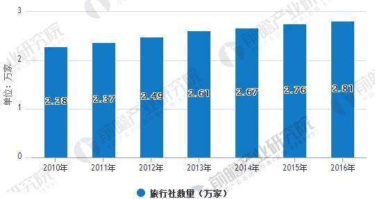 在行业整体蛋糕越做越大的背景下,旅行社数量保持稳定。前瞻产业研究院数据显示,截止2016 年底,全国共有传统旅行社2.81万家,同比增长1.7%。受到线上旅游的冲击和自由行的盛行,旅行社在国内旅游市场方面表现一般,但出境游中团客占比仍然较大。