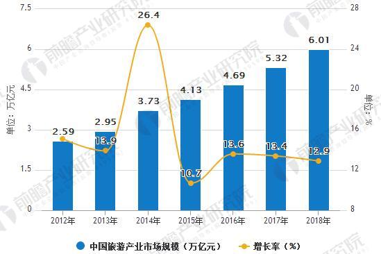2012-2018年中国旅游产业总收入统计