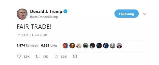而经历了一天的事态发酵后,特朗普只发了一条四个字的推特:“公平贸易!”