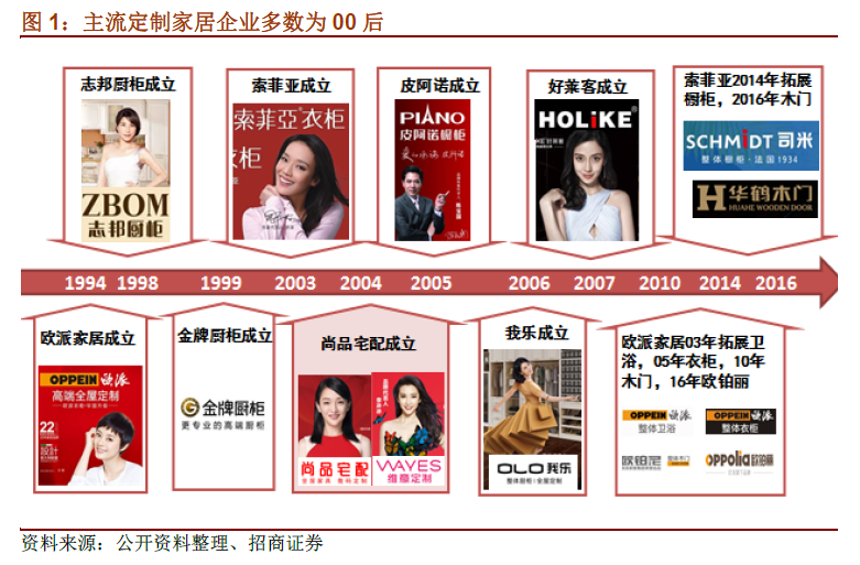2013 年以前门店扩张是企业增长主驱动。2013 年以前,随着国内经济快速发展以及家具消费需求兴起,进入定制领域的企业一方面得以分享行业成长红利,另一方面通过全国性门店扩张获得较为明显的渠道红利,带动企业规模实现快速发展。以索菲亚为例,2010~2014 年门店数复合增长率达25.6%,其中最高增速达37%。我们测算分析将其当年收入增速分拆为当年开店贡献、当年同店贡献,则发现2011~2012 年索菲亚收入增长最主要贡献基本来自于门店数的增加,同店贡献相对较小。