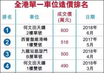 值得注意的是,其交易创下了新纪录,而此前,全港车位最高价是518万港元。一名商业主管在2017年6月,买下香港西营盘一个停车位,致香港停车位价格首破500万港元大关。