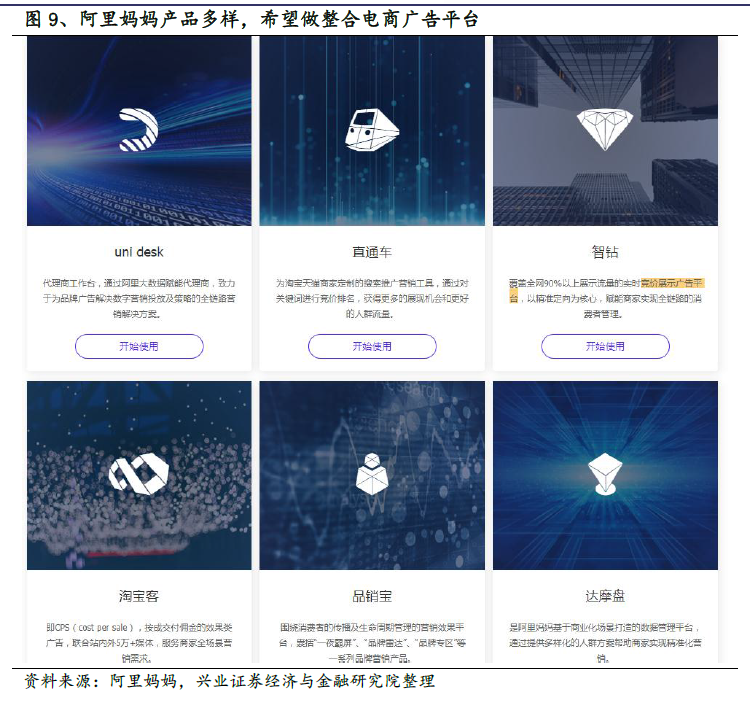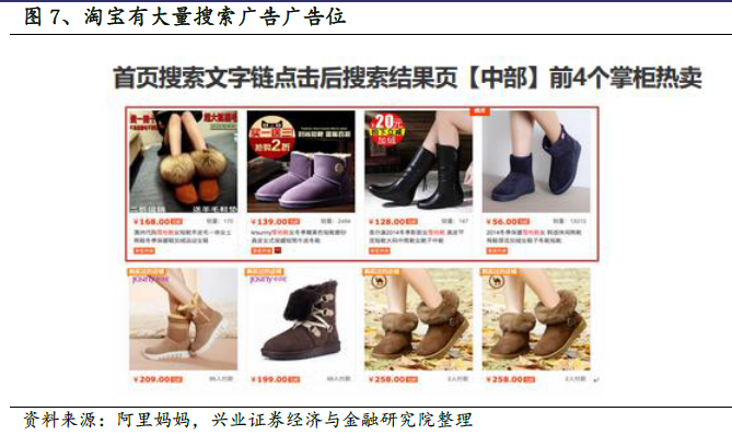 阿里是电商广告绝对领头羊。根据艾瑞咨询提供的数据,2017 年电商广告约为1231 亿,在互联网广告中的占比是31.7%,而我们估计阿里巴巴2018 财年的广告收入约为1376 亿元(2017 年3 月31 日-2018 年3 月31 日),扣除优酷广告收入之后约为1260 亿元,考虑到统计口径不一无法直接比较,但通过对比仍可得知阿里巴巴占比巨大的广告收入体量,可以断定阿里占据电商广告的绝大部分份额。