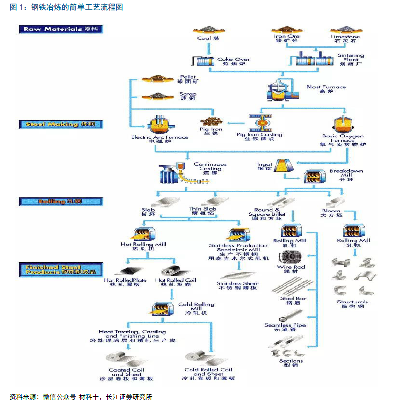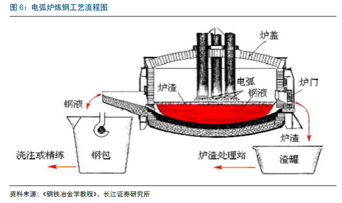 短流程是物理变化:通电熔化废钢。作为可回收的金属类资源品,钢铁可通过回收进行废钢的二次冶炼。相比高炉炼钢工艺的“炼铁-炼钢-轧材”三步,短流程仅需“炼钢-轧材”即可,因此简称为叫短流程。长短之间的差别,一方面来自于流程的长短,另一方面来自于背后原理之间的差别。长流程属于化学反应,而短流程属于物理变化。