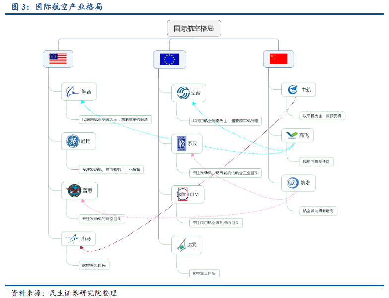 整机厂分工明确,协调发展。在整机生产行业,中国飞机制造厂分布呈现集团化、规模化、主体化、分类化的特点。各大整机厂生产飞机均按照“所里设计、厂里生产”的步骤进行专业化批量生产。中国整机厂大都属于中国航空工业集团有限公司管理,旗下包括成飞、沈飞、西飞三大主流整机厂,还有哈飞、昌飞、洪都、贵飞和通飞等新一代主机厂,与三大主流整机厂相互补充,共同促进我国军机整机的制造。各总机厂根据军机种类不同划分任务,沈飞和成飞主要生产战斗机,由于我国战斗机占军机数量的50%以上,因而沈飞和成飞在整机厂中占据主体地位;西飞则主要生产运输机和轰炸机,哈飞和昌飞主要生产直升机,洪都和贵飞主要生产教练机,通飞主要生产通用飞机。整体来看,实现了整机这一细分领域的分类化生产和协调式发展。
